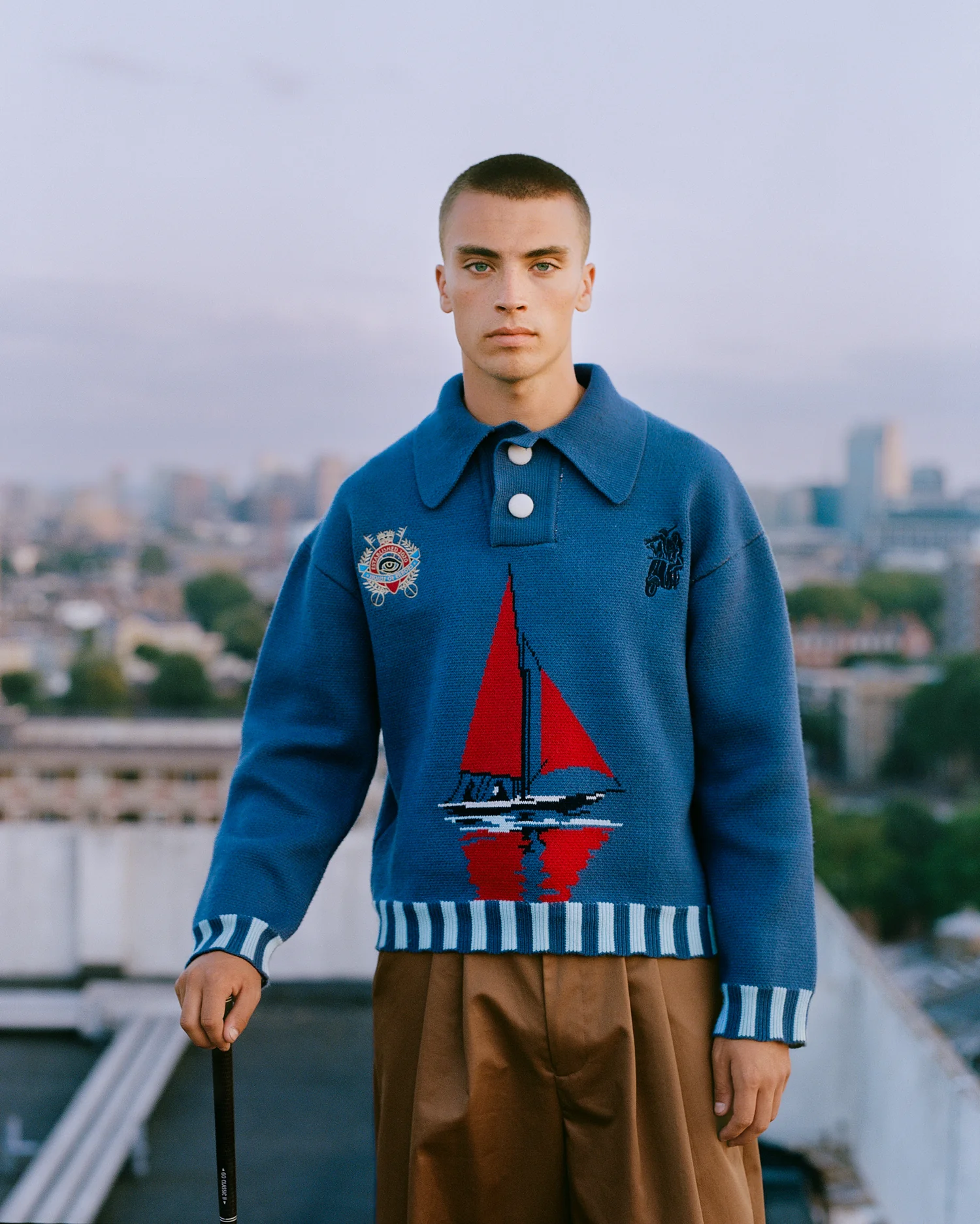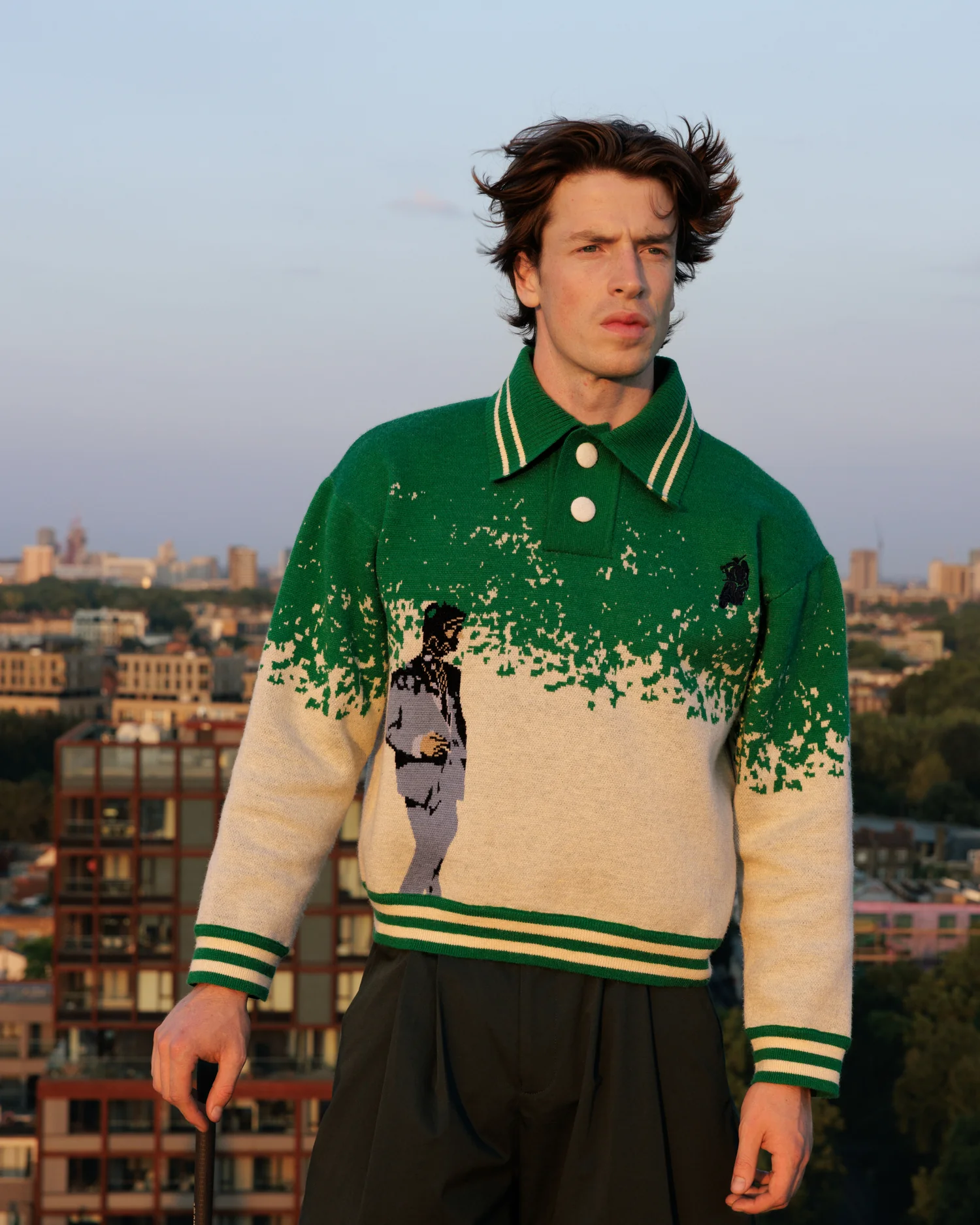 Laurier collection explores structure, leisure, and quiet confidence. Referencing classic sporting codes and collegiate detail, the collection refines familiar forms through texture, proportion, and subtle graphic language. Knits and crests feel considered rather than nostalgic, while relaxed silhouettes balance polish with ease.
